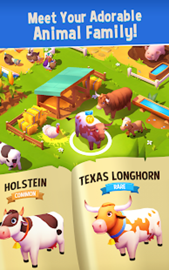 คุณจะต้องทำสิ่งเหล่านี้โดยคำนึงถึงเงินหรือเครื่องมือที่มีอยู่ของคุณ ที่นี่ คุณสามารถครอบครองคอลเลกชั่นของ สัตว์น่ารักหลายร้อยชนิด รวมถึง Holstein Cow, Yorkshire Pig, Kalahari Goat, Suffolk Sheep, Cotton Tail Rabbit และ Gypsy Horse สัตว์แต่ละสายพันธุ์ที่คุณจะดูแลสามารถมอบสินค้าเกษตรที่สามารถขาย แลกเปลี่ยน หรือนำไปใช้เพื่อดำเนินการตามคำสั่งซื้อและปรับปรุงพื้นที่ของคุณ